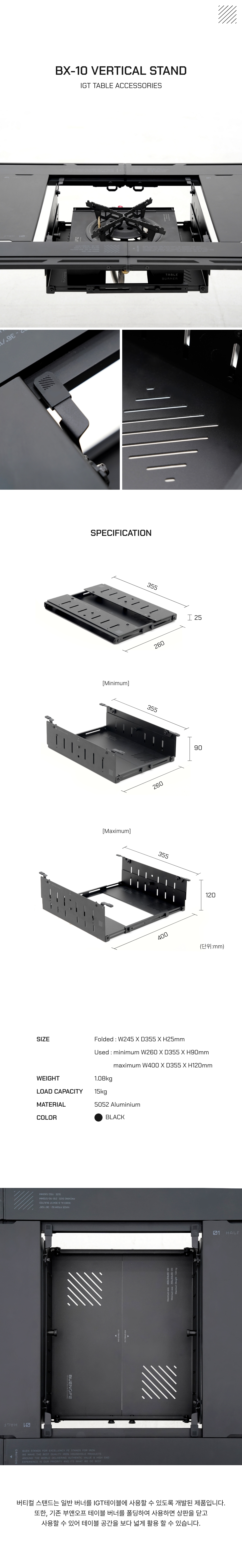 Unfold : W260-400 x D355 x H90-120