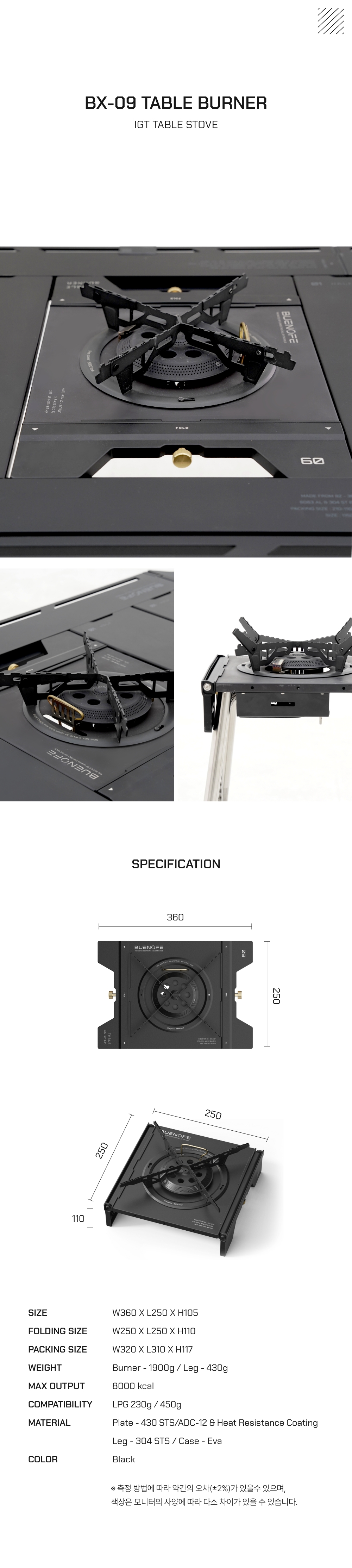 SIZE W360 x L250 x H105